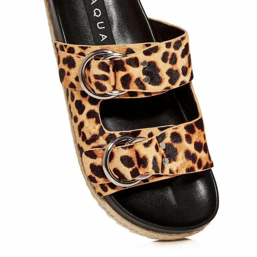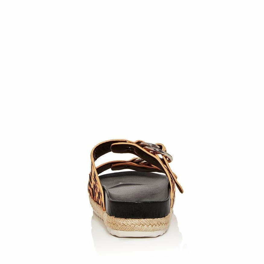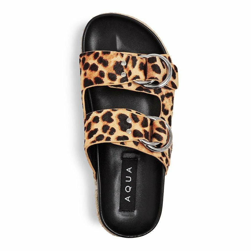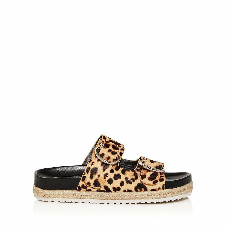 Leopard-print calf hair elevates beachy espadrille sandals with adjustable buckle straps.