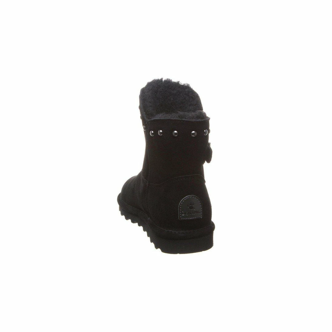 Cow suede bootie features half round studs and buckle trim with a shaped collar line. Treated with NeverWet® technology for protection from the elements. Wool blend lining with a removable sheepskin comfort footbed on our slim lightweight blown rubber outsole.