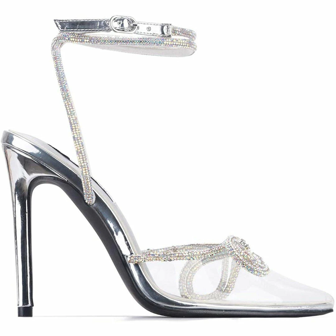 Cape Robbin SHOES Christie Rhinestone Bow Clear Heels