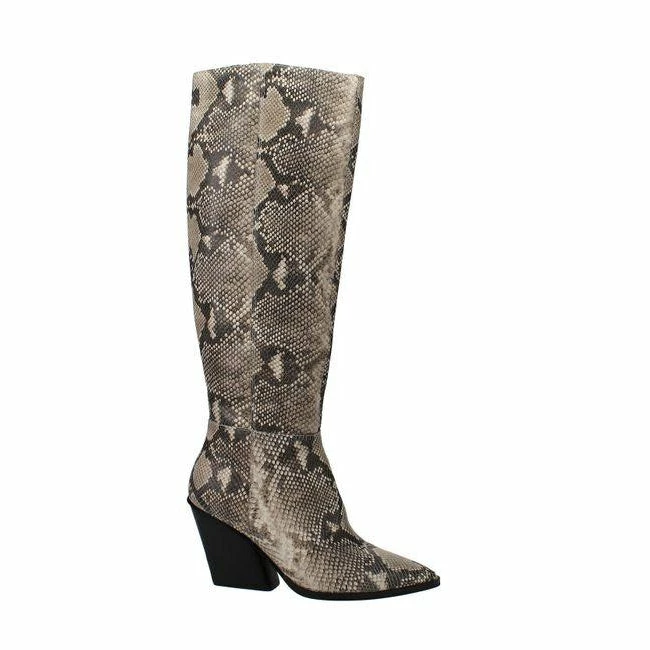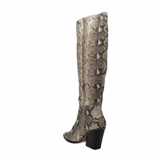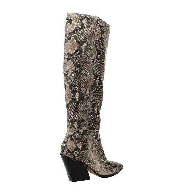 Elevate your style with the contemporary drama of a sleek knee-high boot lifted by a demi-wedge heel.