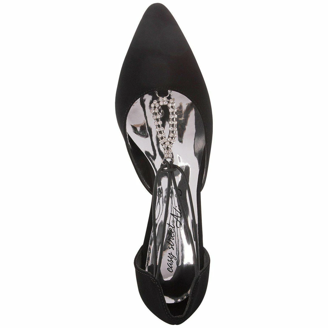Perched on a sensible kitten heel, these Moonlight evening sandals from Easy Street accent a pretty look with shimmering rhinestones for radiant style.