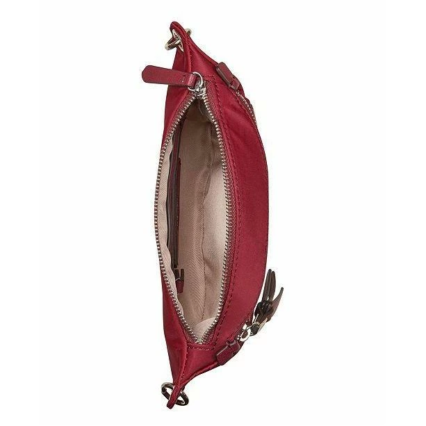 The zip it up belt bag features 1 zipper pocket on the inside back wall of the interior. The exterior includes 1 zipper pocket on the front.