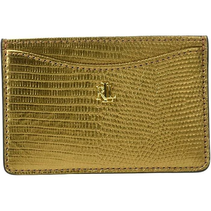 Crafted from supple leather with a lizard-embossed print, the streamlined silhouette of this chic card case from Lauren Ralph Lauren is finished with signature “LRL” hardware.