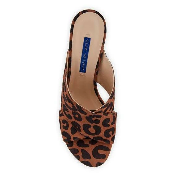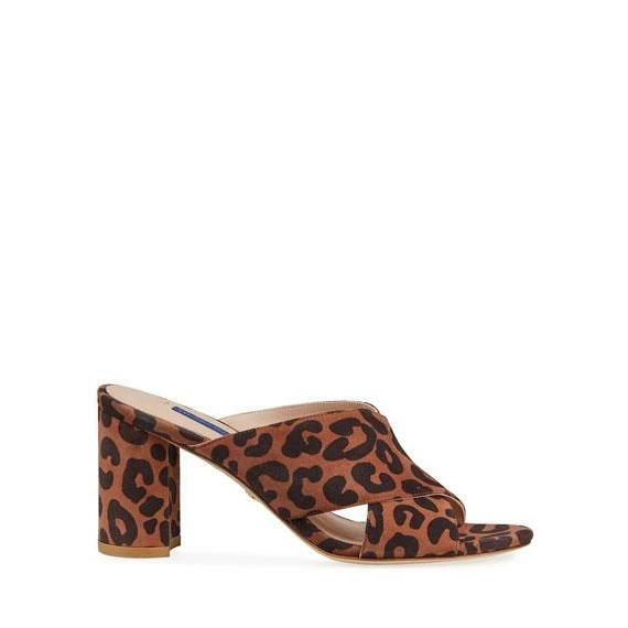 Wide, crisscrossed straps top a lightly cushioned mule lifted by a covered semi-column statement heel.