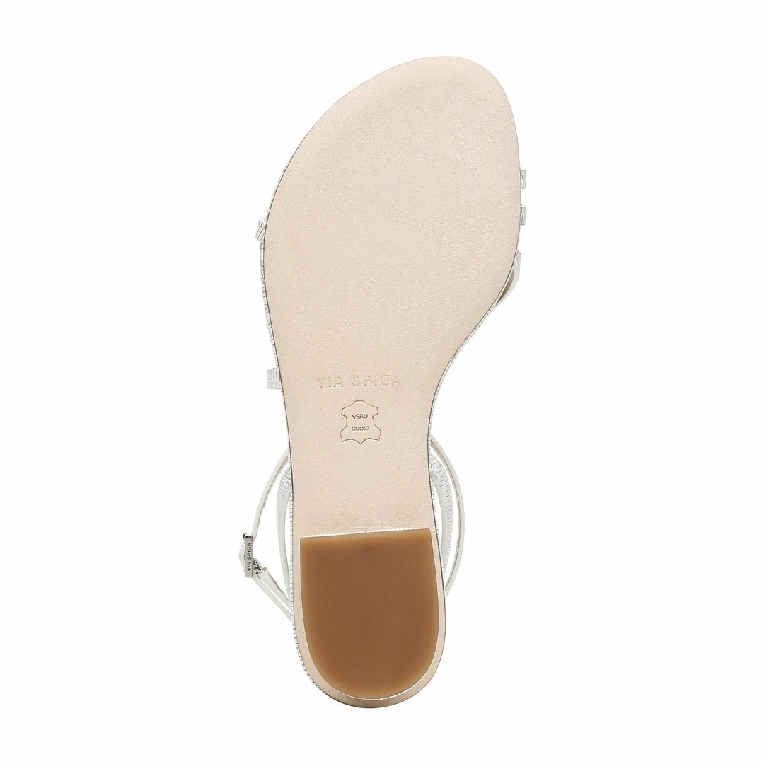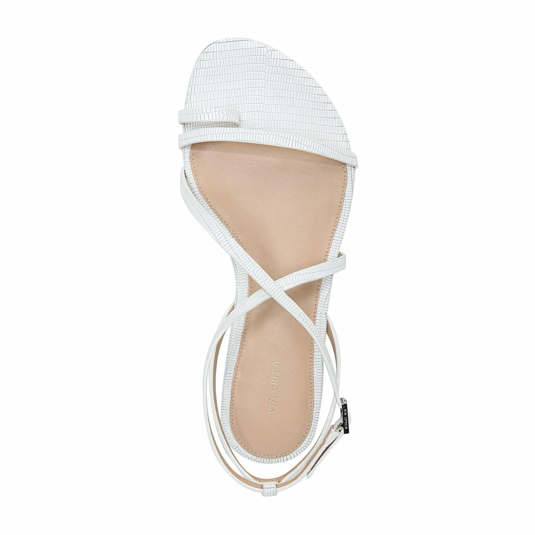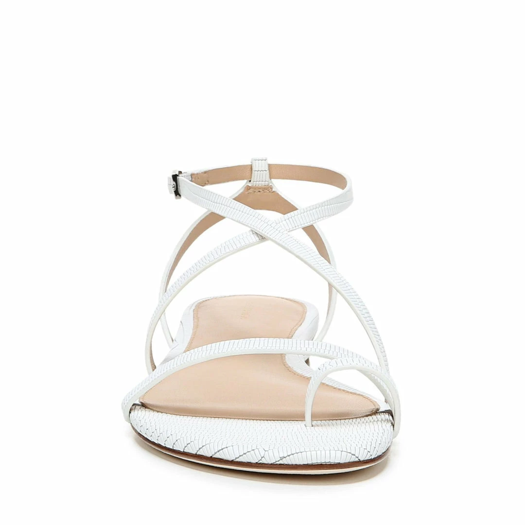 Show off a pretty pedi in this flat sandal crafted with slender crisscrossed straps, a lightly padded footbed and a chic toe ring.