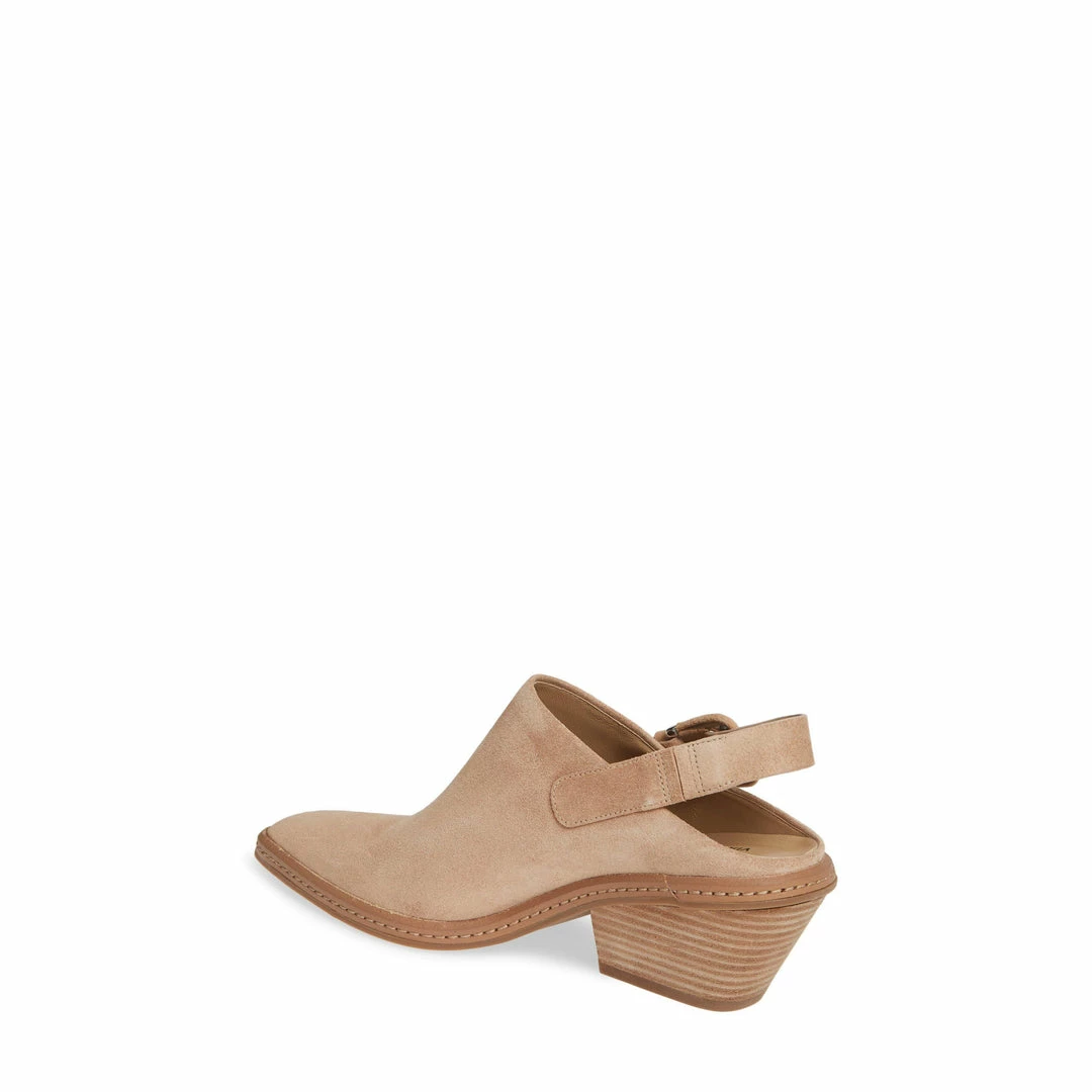 A buckle strap adds a hint of moto edge to this standby block-heel bootie.