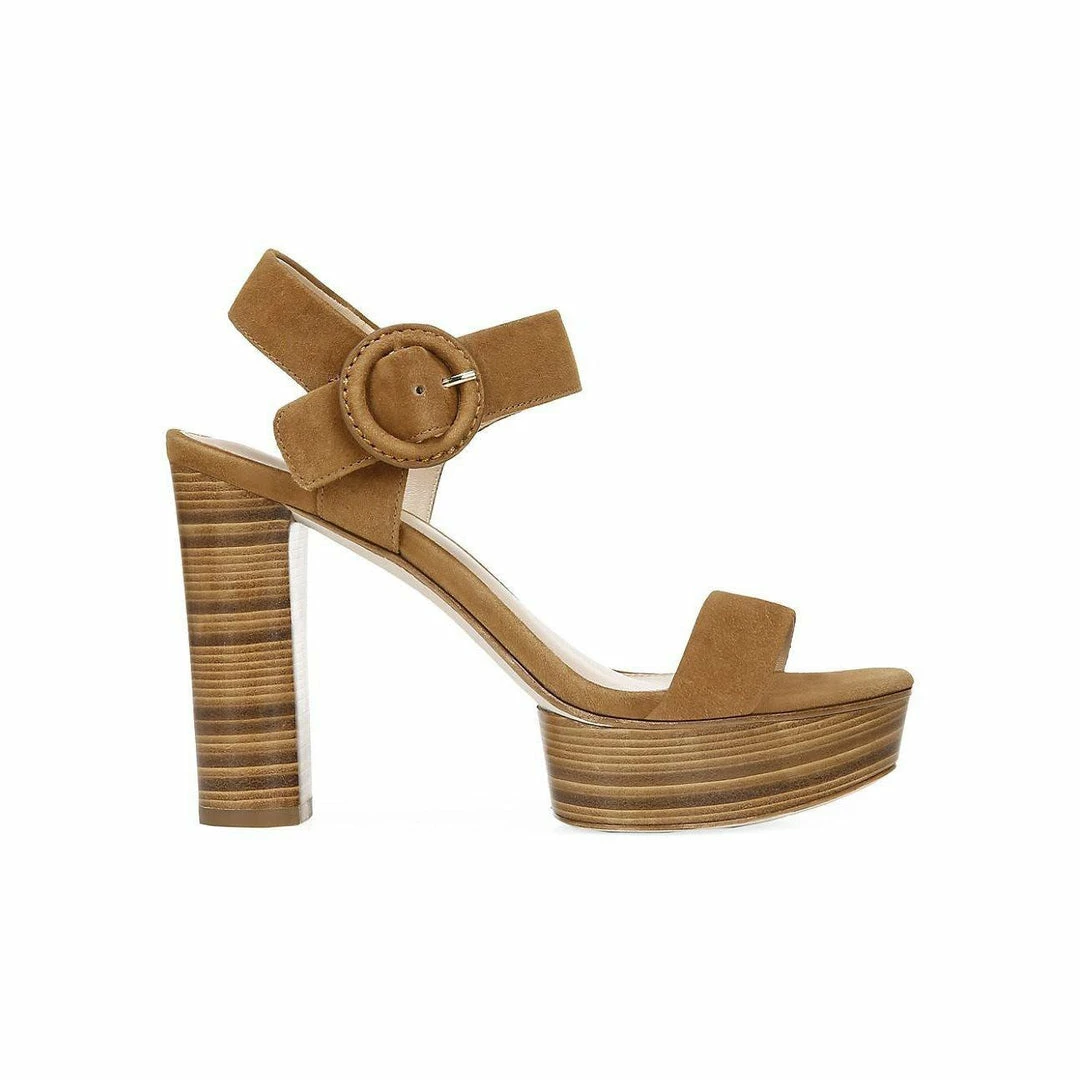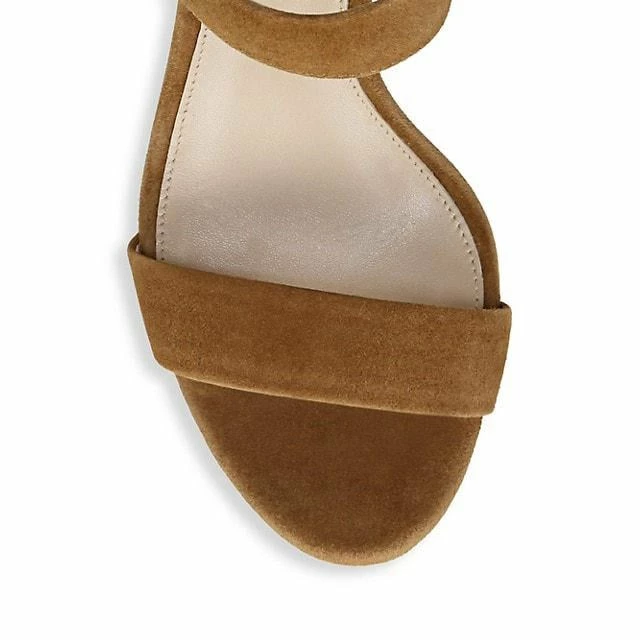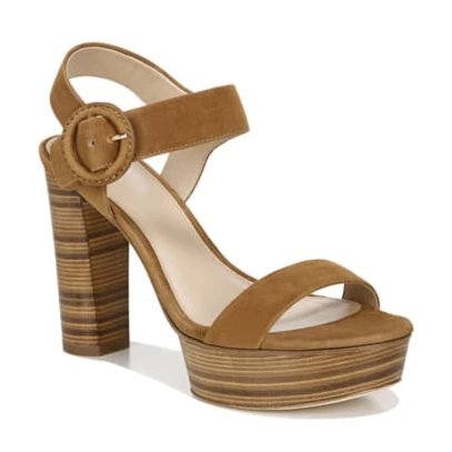A stacked heel and platform enhance the statement-making style of this contemporary-chic ankle-strap sandal.