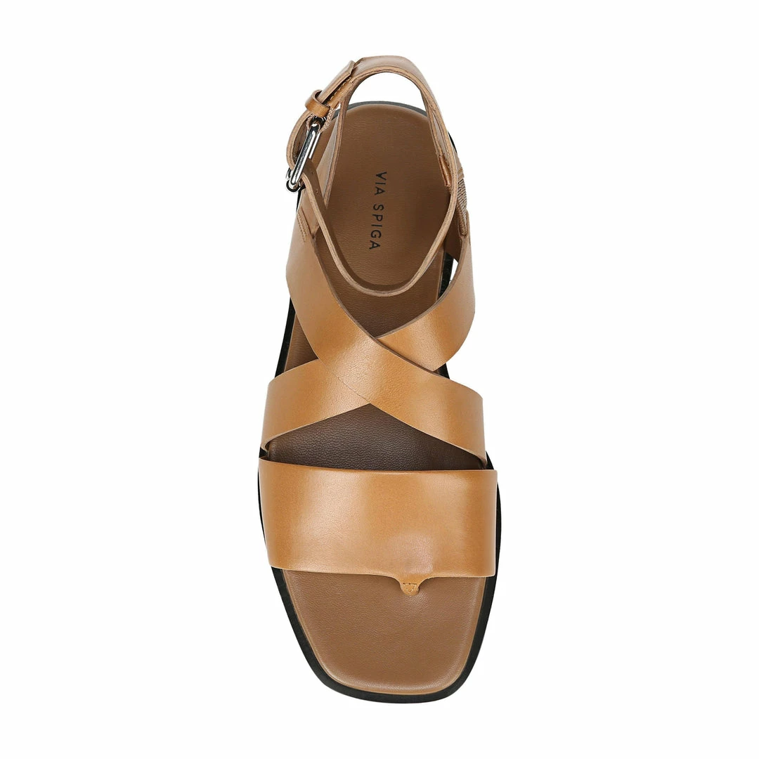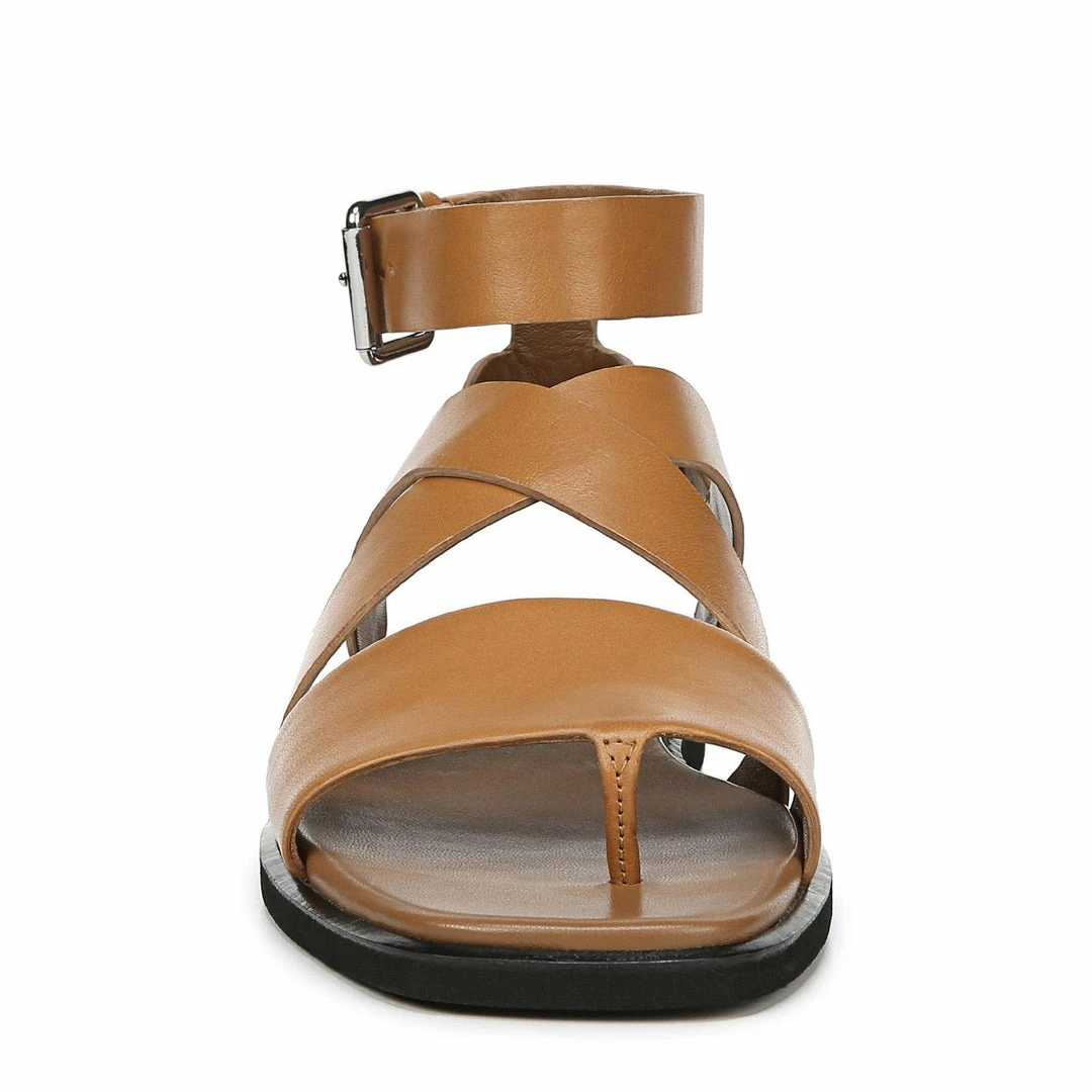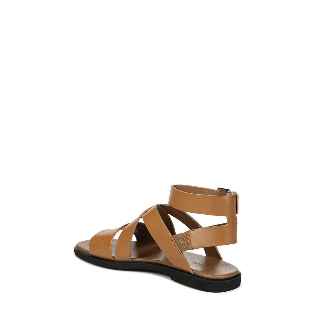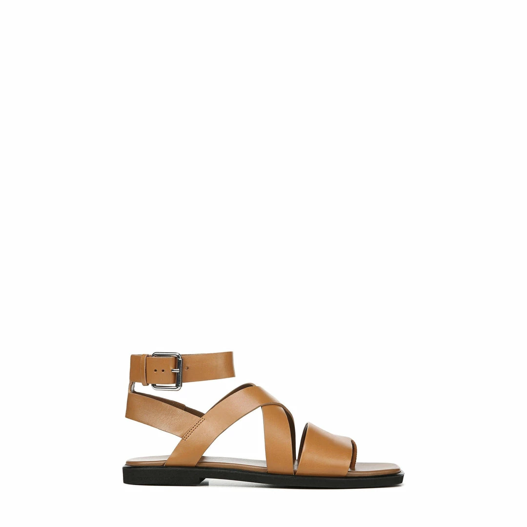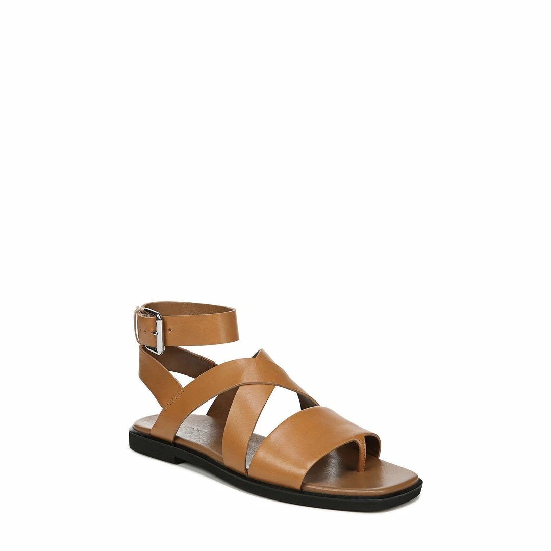 A streamlined silhouette and smooth leather straps distinguish a chic sandal with a gleaming buckle at the ankle.