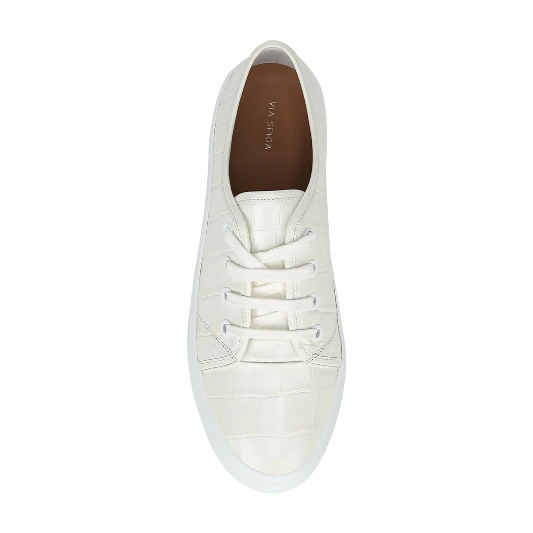 A cushy platform sole bumps up the sporty-chic style of an around-town sneaker made from rich leather.